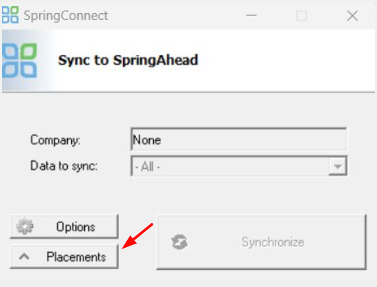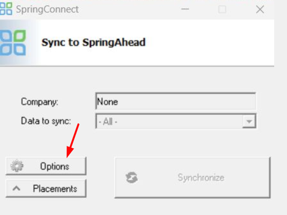 - Once this is done, open up SpringConnect. Click Placements, then Options in the upper right-hand corner