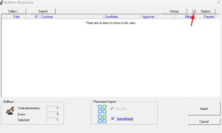 To view previously imported placements and the data associated with them, click History in SpringConnect’s Placements screen. This will bring up a list of data arranged by the date imported.